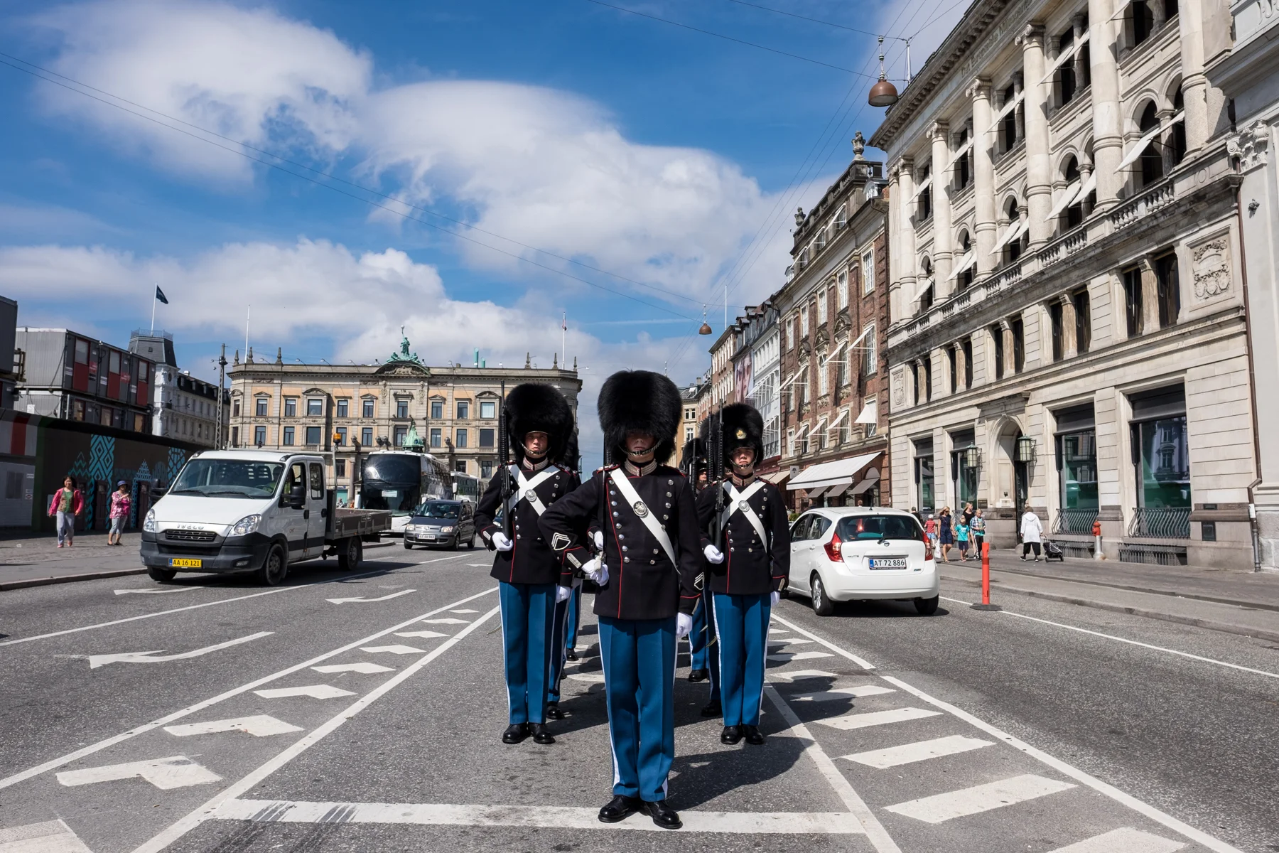 There is a changing of a guard they do every day in front of the castle. But sadly, I wasn't going to have enough time to see it take place. Luckily, as I was walking to the train to head to the airport, I ran into the guards in the middle of the street.